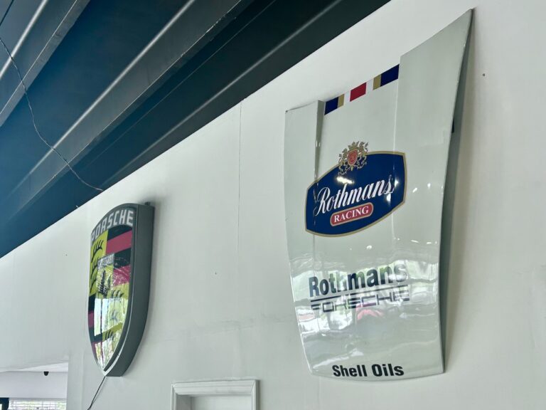 An original Rothmans Porsche racing hood wall piece, featuring the iconic Rothmans and Shell Oils livery. This piece captures the spirit of Porsche’s golden era in motorsport, celebrating the brand’s legendary endurance racing history.