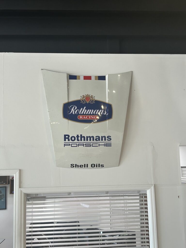 An original Rothmans Porsche racing hood wall piece, featuring the iconic Rothmans and Shell Oils livery. This piece captures the spirit of Porsche’s golden era in motorsport, celebrating the brand’s legendary endurance racing history.