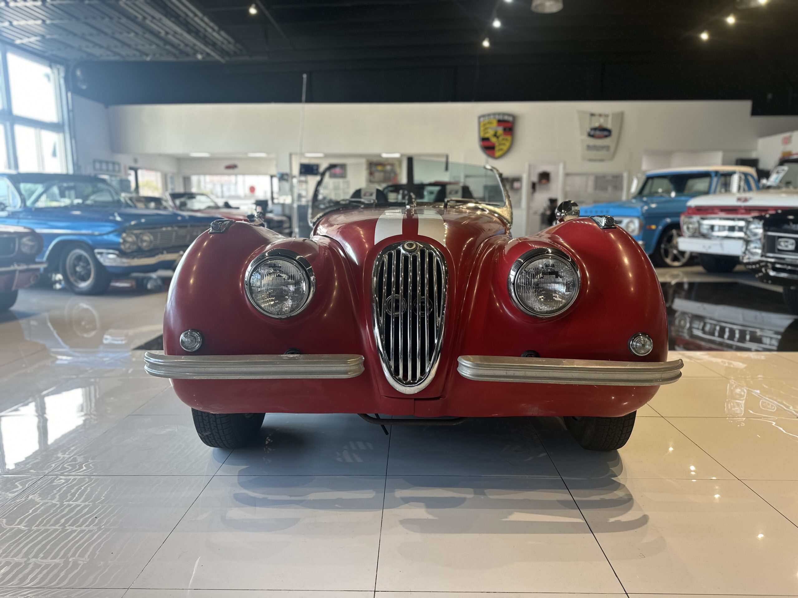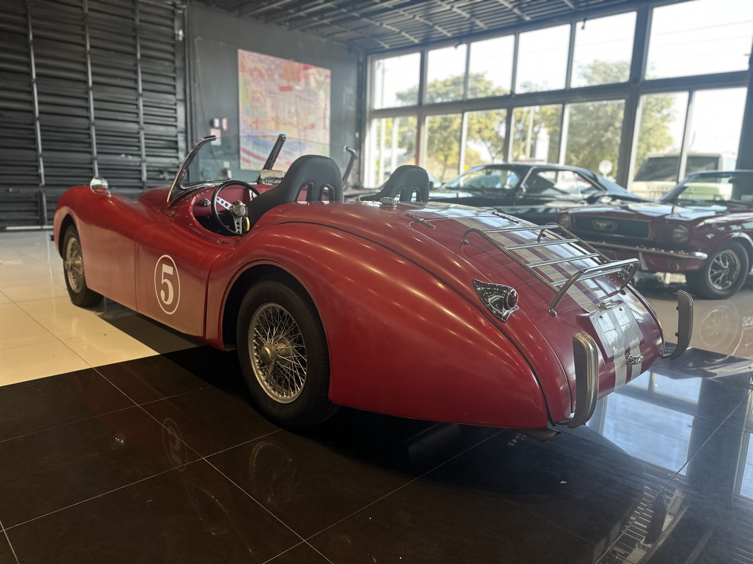 This 1952 Jaguar XK 120 replica offers the timeless design of the original with updated reliability and drivability. Built on an original XK 120 chassis, it maintains authentic proportions while featuring a 330 HD V6 engine and automatic transmission for smooth, dependable performance.