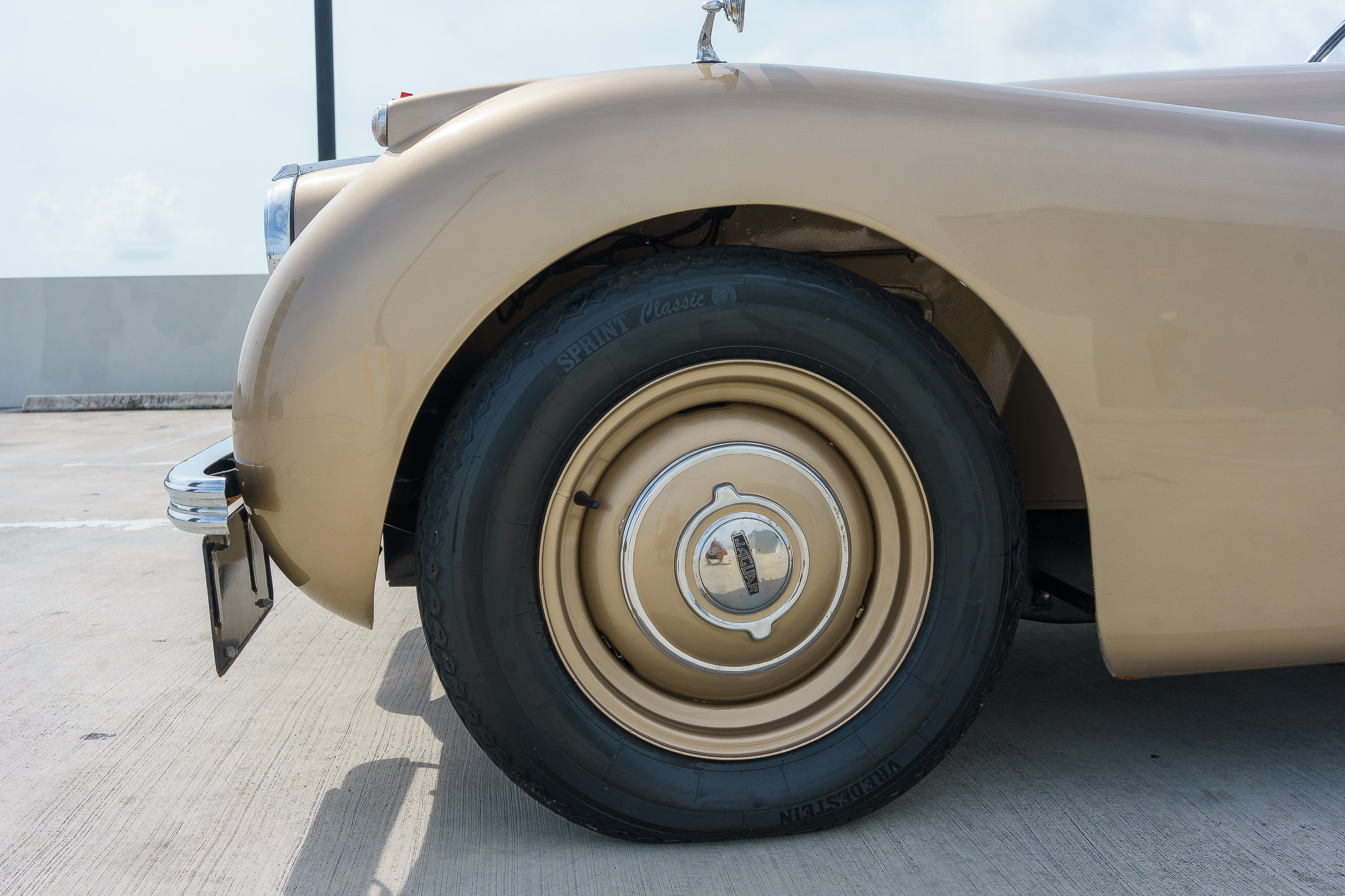 The car’s mileage is unknown (TMU) and comes with a clean title. This example underwent a meticulous frame‑off restoration that included mechanical upgrades to enhance reliability. The XK120 drew its name from its 120 mph top speed, a figure that crowned it the fastest production car at the time. Collector‑grade top to bottom, this car delivers the refined performance and timeless elegance that distinguishes Jaguar’s post‑war heritage.