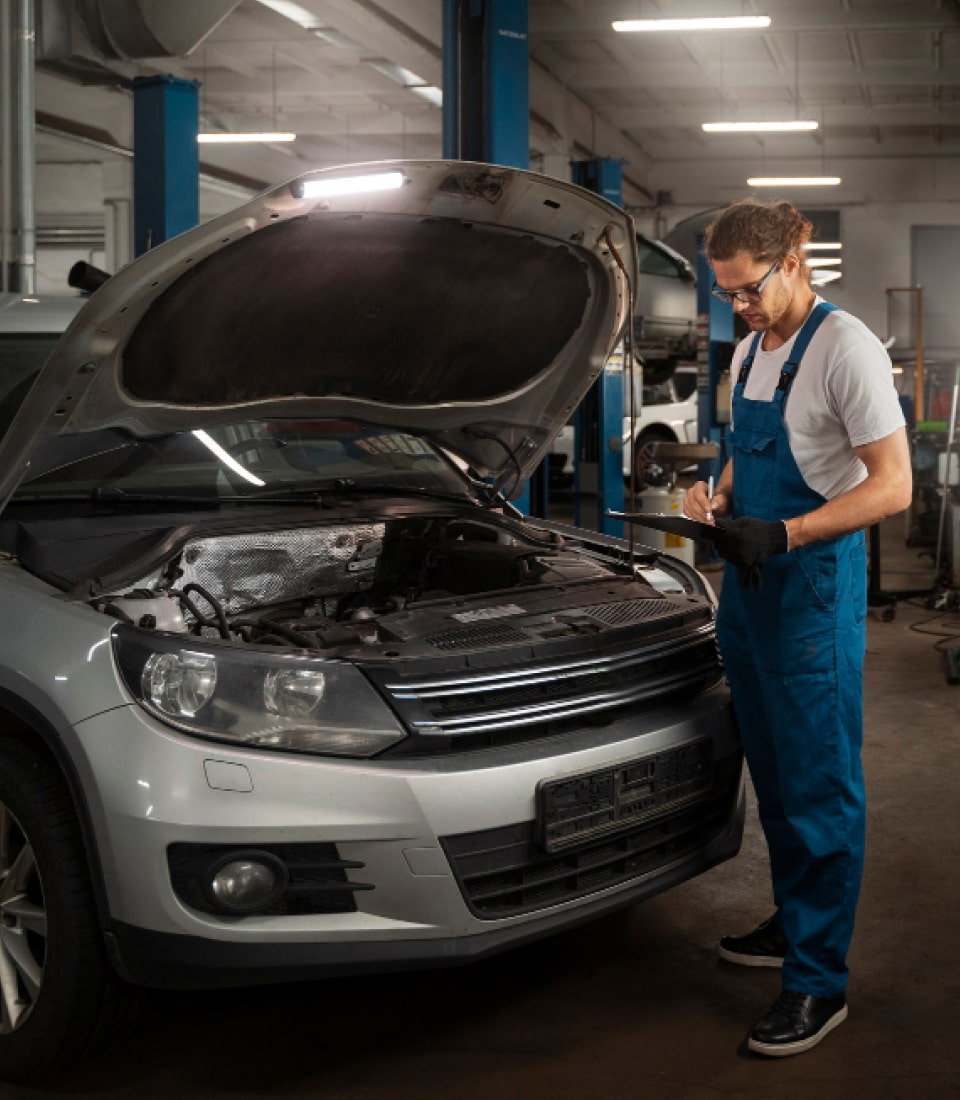Mechanic working in car
